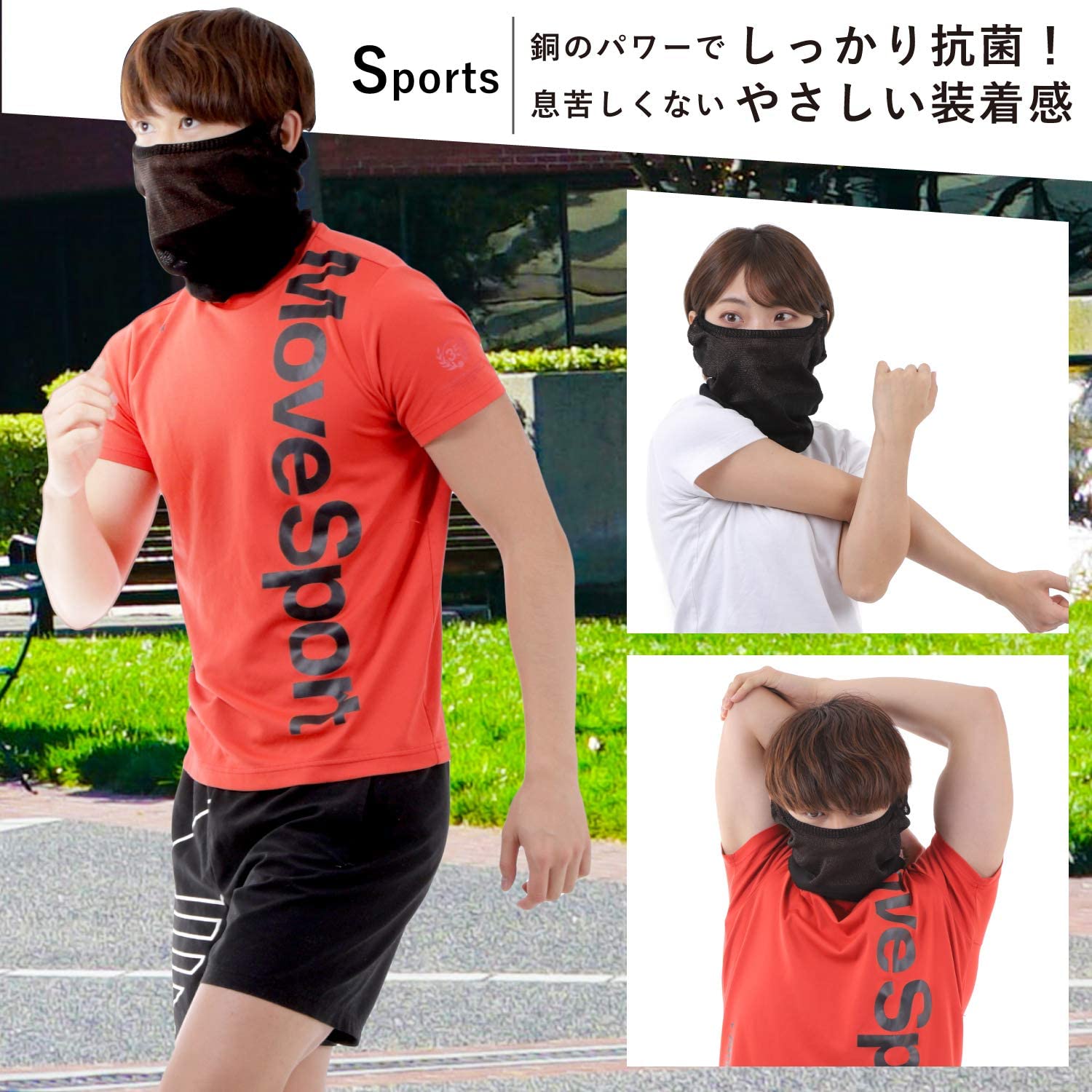 鼻と口周辺に抗菌力を持つ銅を使った繊維を使用。