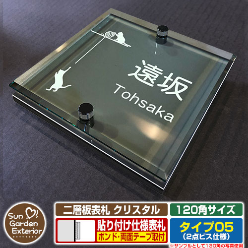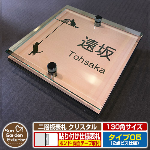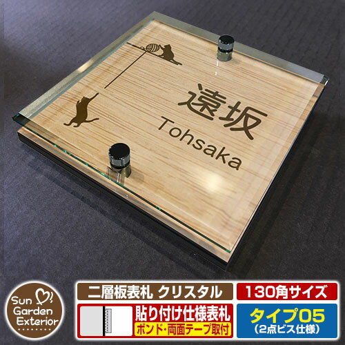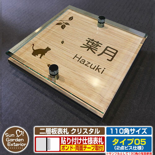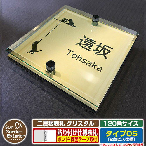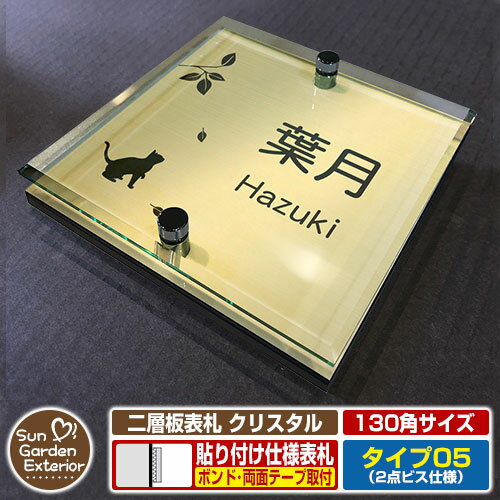 【ポイント5倍】ネームプレート 二層板表札 クリスタル Type05:2点ビス仕様【サイズ:120×120mm】 イメージ画像:D樹木と猫(3ゴールド) YKKap ルシアスポストユニット 三協アルミ ステイム 機能門柱 機能ポールにも取り付け可能 貼り付けタイプ 表札