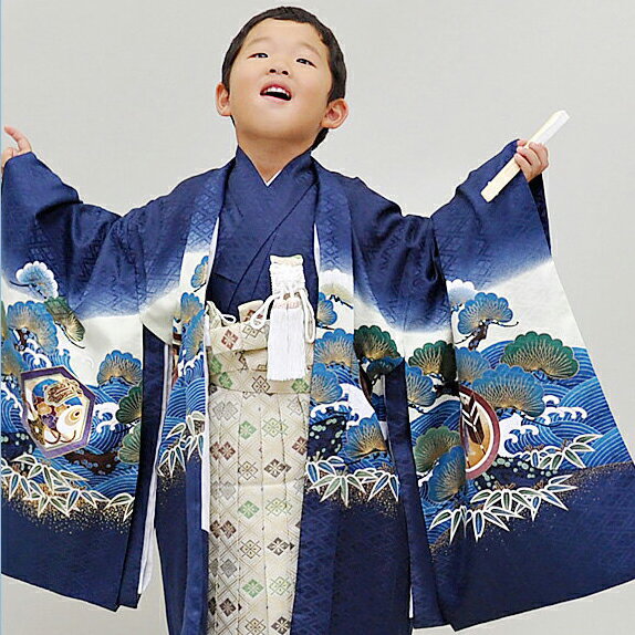 七五三 新作 5歳男の子着物フルセット◆黒色系 鷹に矢羽◆sdn017